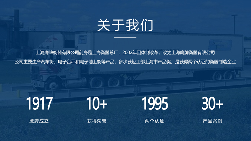 more+上海鷹牌衡器有限公司是上海衡器總廠轉制的企業(yè),前身是上海衡器總廠,創(chuàng)建于1917年,是地磅等衡器設計、制造廠家,主營電子地磅、電子秤以及地磅維修,2002年因體制改革,改為上海鷹牌衡器有限公司!